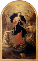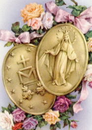 The devotion commonly known as that of the Miraculous Medal owes its origin to Zoe Labore, a member of the Daughters of Charity of St. Vincent de Paul, known in religion as Sister Catherine [Note: She was subsequently canonized], to whom the Blessed Virgin Mary appeared three separate times in the year 1830, at the mother-house of the community at Paris. The first of these apparitions occurred 18 July, the second 27 November, and the third a short time later. On the second occasion, Sister Catherine records that the Blessed Virgin appeared as if standing on a globe, and bearing a globe in her hands. As if from rings set with precious stones dazzling rays of light were emitted from her fingers. These, she said, were symbols of the graces which would be bestowed on all who asked for them. Sister Catherine adds that around the figure appeared an oval frame bearing in golden letters the words "O Mary, conceived without sin, pray for us who have recourse to thee"; on the back appeared the letter M, surmounted by a cross, with a crossbar beneath it, and under all the Sacred Hearts of Jesus and Mary, the former surrounded by a crown of thorns, and the latter pierced by a sword.